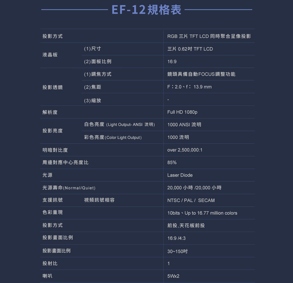 EPSON EF-12 3LCD 雷射投影機